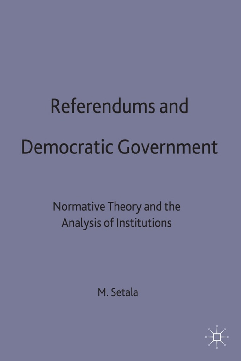 Referendums and Democratic Government is the most systematic analysis of the referendum so far. The referendum phenomenon is approached from different perspectives: social choice theory, theories of democracy, a comparative study on 22 democracies, and in-depth case studies of Sweden, Denmark and Switzerland. The referendum is not a unitary phenomenon but it serves various functions and different normative goals in the political systems studied. This variation may largely be explained by the differences in the initiating and agenda-setting procedures.