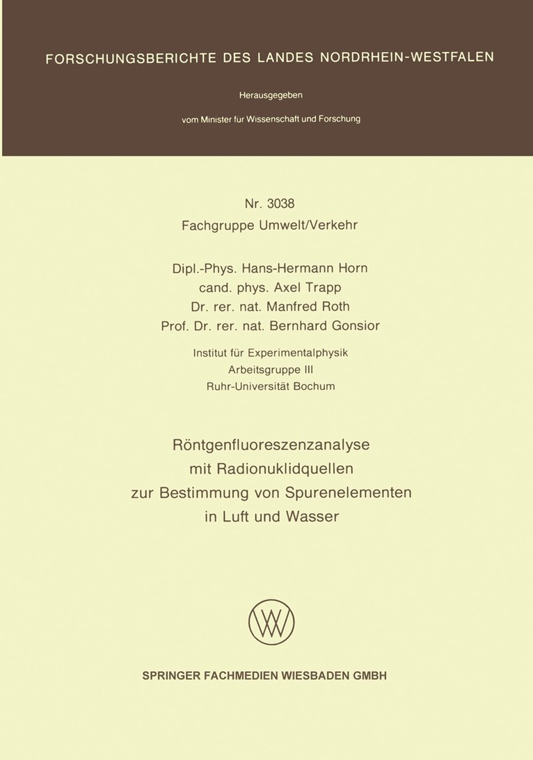 Röntgenfluoreszenzanalyse mit Radionuklidquellen zur Bestimmung von Spurenelementen in Luft und Wasser