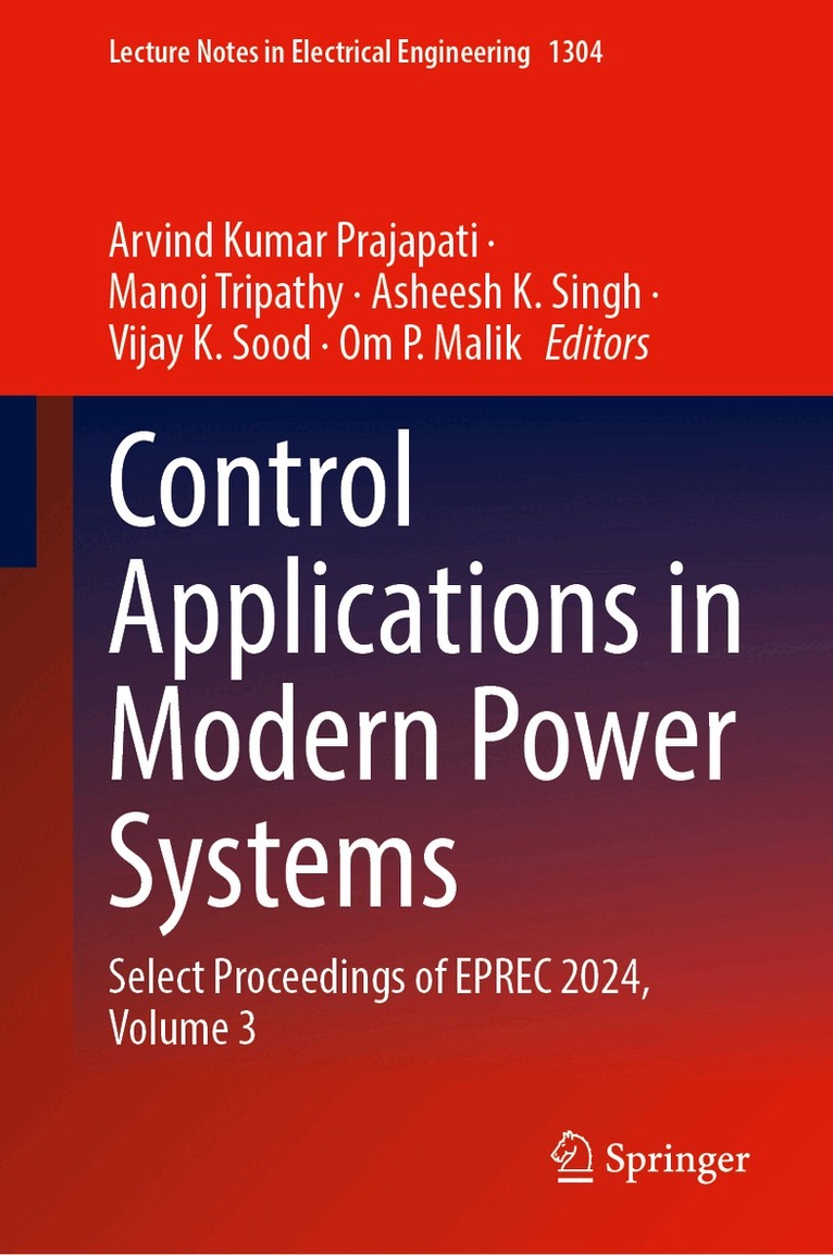 This book entitled “Control Applications in Modern Power System - Select Proceedings of EPREC-2023 provides rigorous discussions, case studies, and recent developments in the emerging areas of control systems, especially, load frequency control, wide-area monitoring, control & instrumentation, optimization, intelligent control, energy management system, SCADA systems, design of control strategies is essential for controlling the reactive power and maintains the voltage profiles, etc. The readers would benefit from enhancing their knowledge and skills in the domain areas. Also, this book may help the readers in developing new and innovative ideas. The book can be a valuable reference for beginners, researchers, and professionals interested in developments in control systems.