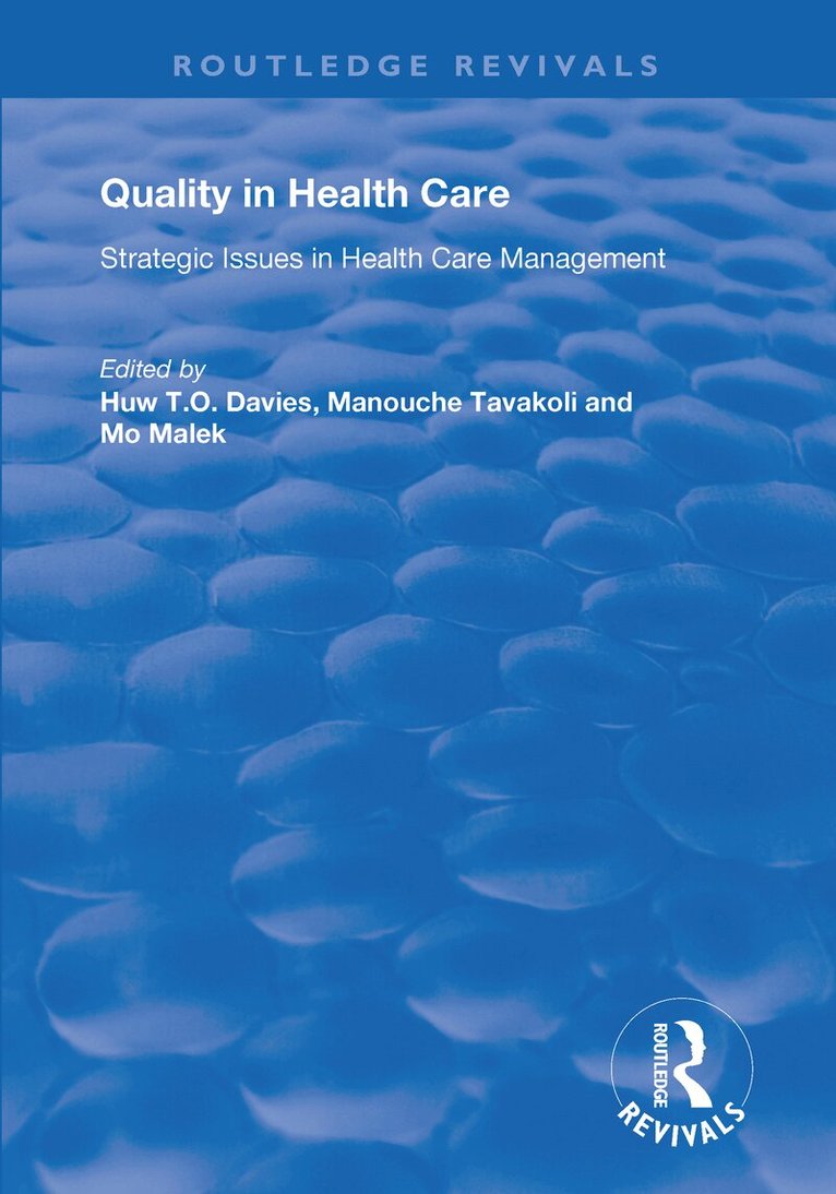 This title was first published in 2001. Enhancing the quality of health services remains a key challenge for all health systems, whatever their stage of development. This collection of leading-edge research from Europe and America explores both quantitative and qualitative approaches to identifying and remedying deficiencies in health care.