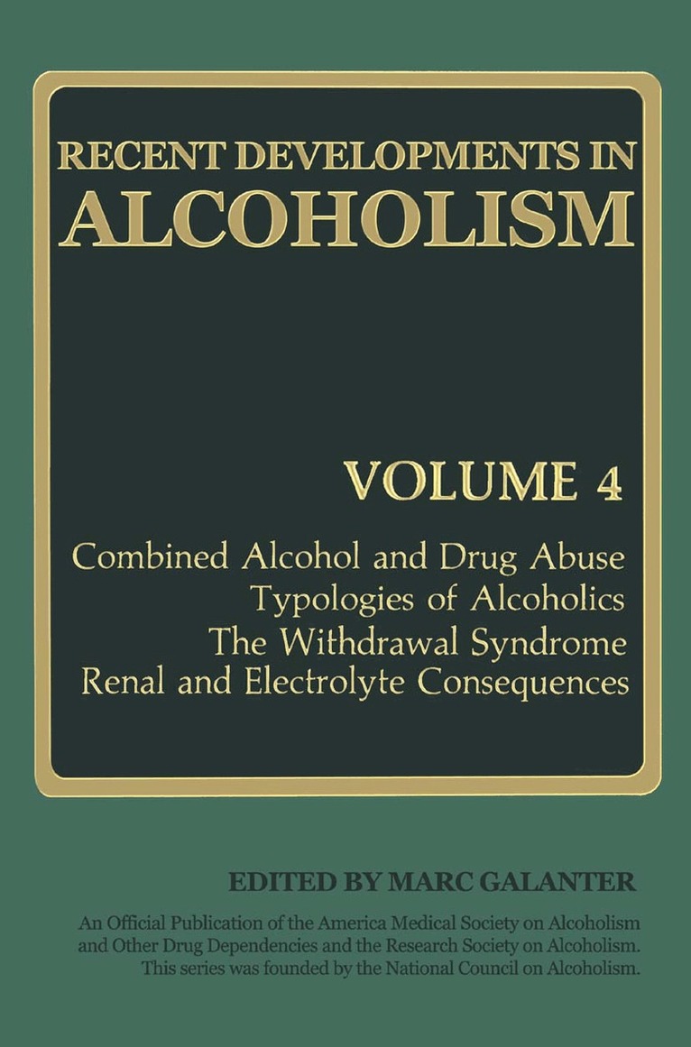 Combined Alcohol and Drug Abuse Typologies of Alcoholics The Withdrawal Syndrome Renal and Electrolyte Consequences