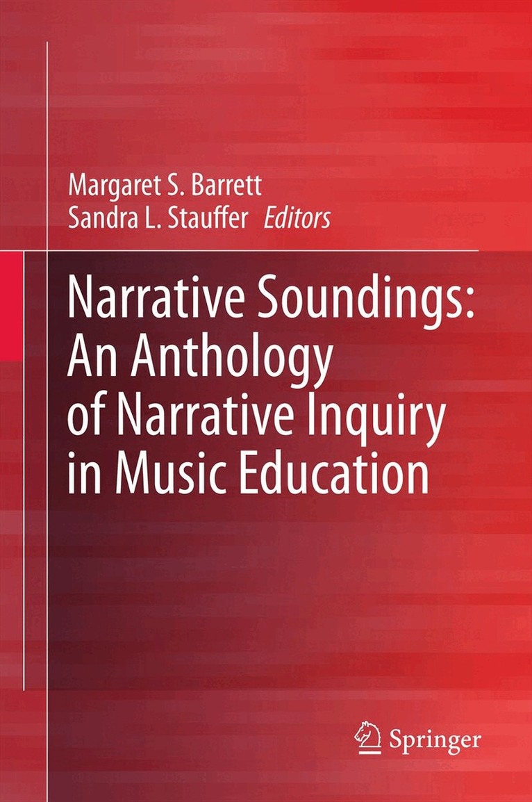 This volume focuses specifically on narrative inquiry as a means to interrogate research questions in music education, offering music education researchers indispensible information on the use of qualitative research methods, particularly narrative, as appropriate and acceptable means of conducting and reporting research. This anthology of narrative research work in the fields of music and education builds on and supports the work presented in the editors’ first volume in Narrative Inquiry in Music Education: Troubling Certainty (Barrett & Stauffer, 2009, Springer). The first volume provides a context for undertaking narrative inquiry in music education, as well as exemplars of narrative inquiry in music education and commentary from key international voices in the fields of narrative inquiry and music education respectively.