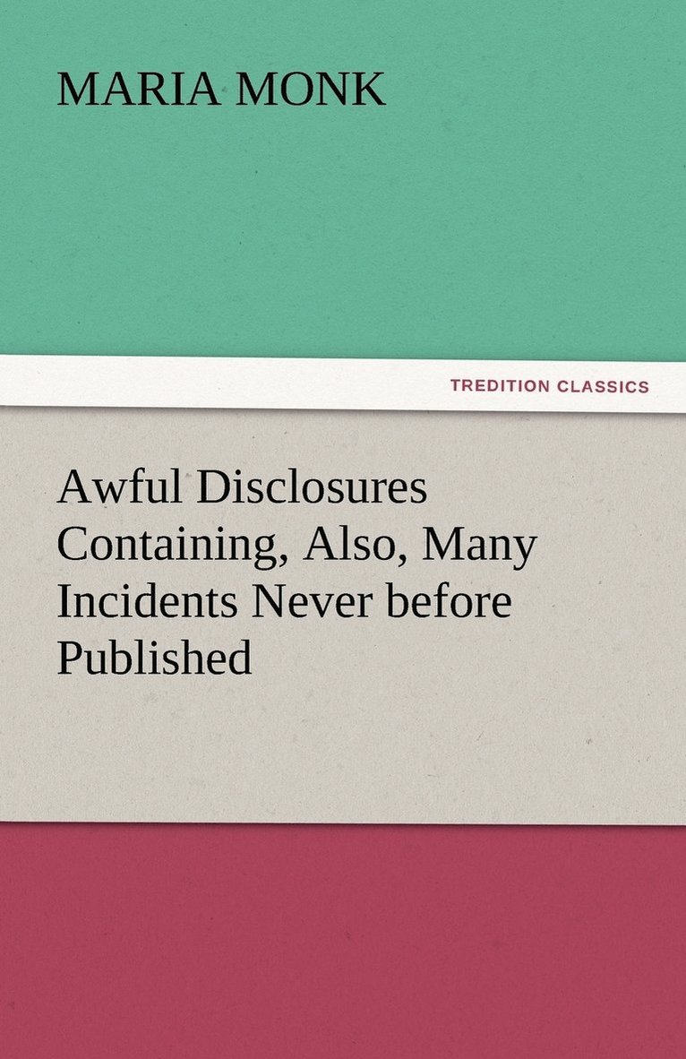 Awful Disclosures of the Hotel Dieu Nunnery of Montreal; Containing, Also, Many Incidents Never before Published