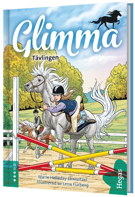 Lilly älskar att hänga med bästa vännerna i stallet och att ta hand om sin favorithäst Glimma. Men så en dag hittar hon konstiga utslag på Glimma. Är hästen sjuk? Tänk om de missar hopptävlingen som Lilly ser så mycket fram emot. Och den nya tjejen i stallet, Julia, verkar nästan lite kär i Simon. Dessutom vill Julia också gärna bli skötare ... på Glimma! Fjärde fristående boken om Glimma och Lilly. Läs också Räddad, Långritten och Spelet. Hegas böcker – lätta att läsa. Svåra att motstå!