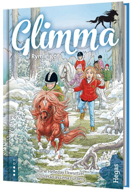 Det lackar mot jul, och på ridskolan förbereder sig Lilly och vännerna för den årliga julfesten. Kajsa, som äger ridskolan, ska resa bort över jul och nyår. Därför ska Lillys familj och bästisen Stina bo på gården. De ska passa den busiga unghunden Pixi och se efter stallet och alla hästarna. Det är mycket att tänka på och förbereda inför julfesten. Allt går bra tills de plötsligt upptäcker att Pixi har rymt. Han ska ju vara med i ett nummer! Ska de hitta honom i tid? Och hur går det med efterforskningen av Glimmas förflutna? Lilly vill ju kunna tävla med Glimma. Men då behöver hon ha ett hästpass, och för att få det måste man veta vem som är Glimmas föräldrar. Sjätte, fristående delen i serien om hästen Glimma och hennes skötare Lilly. Fartfyllda historier för slukaråldern - med lärorika faktarutor för den hästintresserade. Hegas böcker – lätta att läsa. Svåra att motstå!