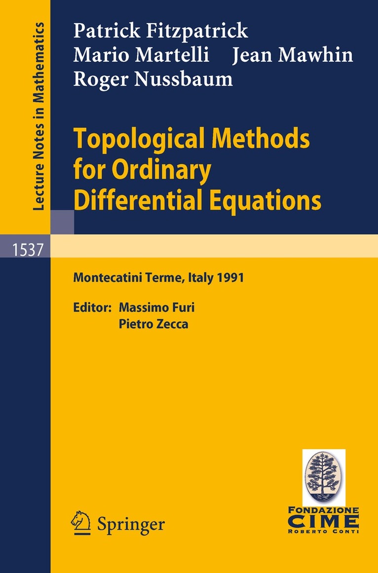 This volume contains the texts of four courses given by the authors at a summer school that sought to present the growing field of topological methods in the theory of ordinary differential equations (in finite and infinite dimension), and to provide a forum for discussion of the wide variety of mathematical tools which are involved. The topics covered range from the extensions of the Lefschetz fixed point and the fixed point index on ANRs, to the theory of parity of one-parameter families of Fredholm operators, and from the theory of coincidence degree for mappings on Banach spaces to homotopy methods for continuation principles.
