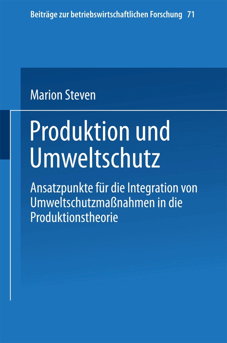 Ansatzpunkte für die Integration von Umweltschutzmaßnahmen in die Produktionstheorie
