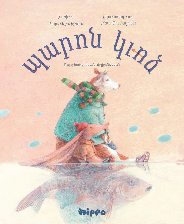 Mitt i snöig solsken åker grisen och kon skridskor på en frusen sjö. Ett mystiskt stick avbryter. Monster? Bävrar? Nej, en fisk! Den klottrar på ett okänt språk. Är det en begäran? Kan de övervinna is och språkhinder? Kommer de att ansluta trots att de inte förstår?