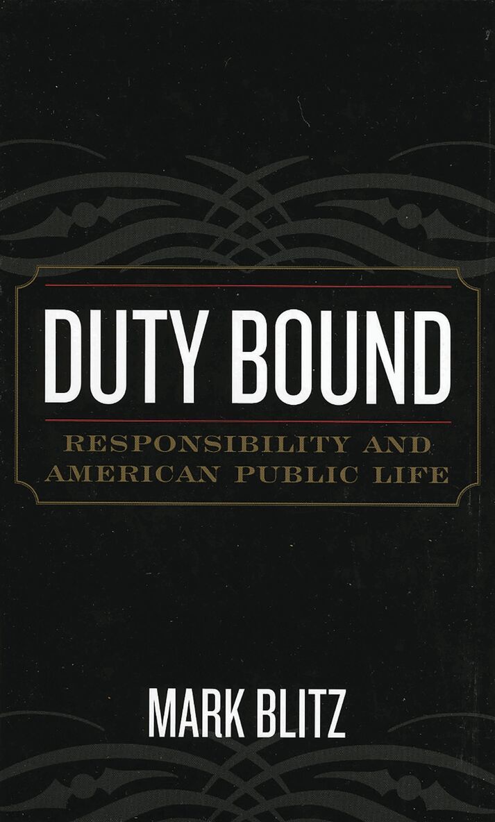 In this timely and enlightening new work, Mark Blitz explores the link between character and politics in liberal democracies, focusing on the importance of responsibility in American public and professional life. He begins by analyzing the place of responsibility in politics, tackling contemporary questions with an eye toward foreign policy and the workings of bureaucracies. Turning to the ways in which responsibility functions in the professions, Blitz critically examines the link between responsible character and the conditions for success in law, journalism, education, and philanthropy. Paying particular attention to biotechnology, Blitz explores responsibility's future and limits in a field fraught with theoretical and practical controversy. Finally, Blitz places liberalism and responsibility in a philosophical context through a thoughtful discussion of John Locke's philosophy. As the nation hotly debates the role of values and character, Duty Bound is a timely look at the importance of one of America's classic civic virtues.
