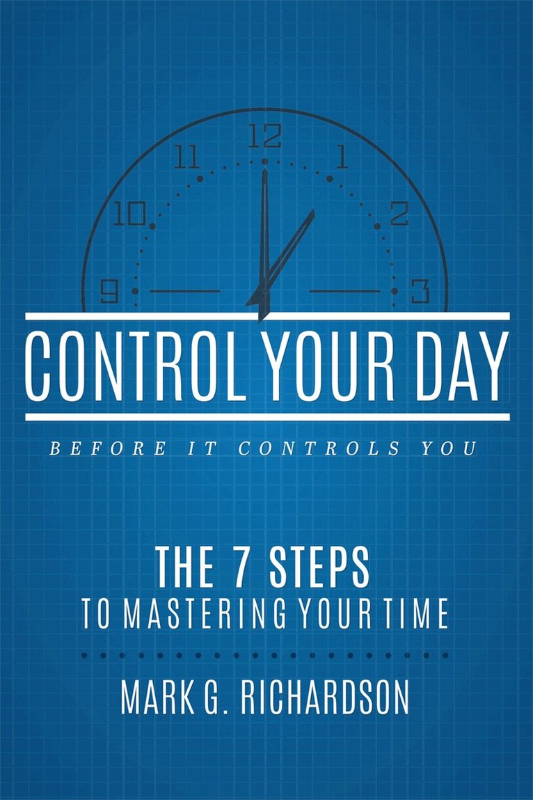 TAKE CHARGE OF YOUR TIME! We all have twenty-four hours in a day. How you choose to spend your limited time defi nes your success. With Control Your Day Before It Controls You, speaker and business advisor Mark G. Richardson walks you through a process with strategies, techniques, and tools to achieve time mastery. This system has been developed and taught to thousands of people over the last twenty-five years. You’ll learn to: •DEVELOP A TIME MIND-SET •WORK BOTH EFFECTIVELY AND EFFICIENTLY •REDUCE YOUR REACTIVE TIME •FIND THE RIGHT CADENCE IN YOUR DAILY ACTIVITIES •FOLLOW A TIME MASTERY FORMULA FOR SUCCESS By understanding time and practicing the time mastery system, you can gain control of each and every day.