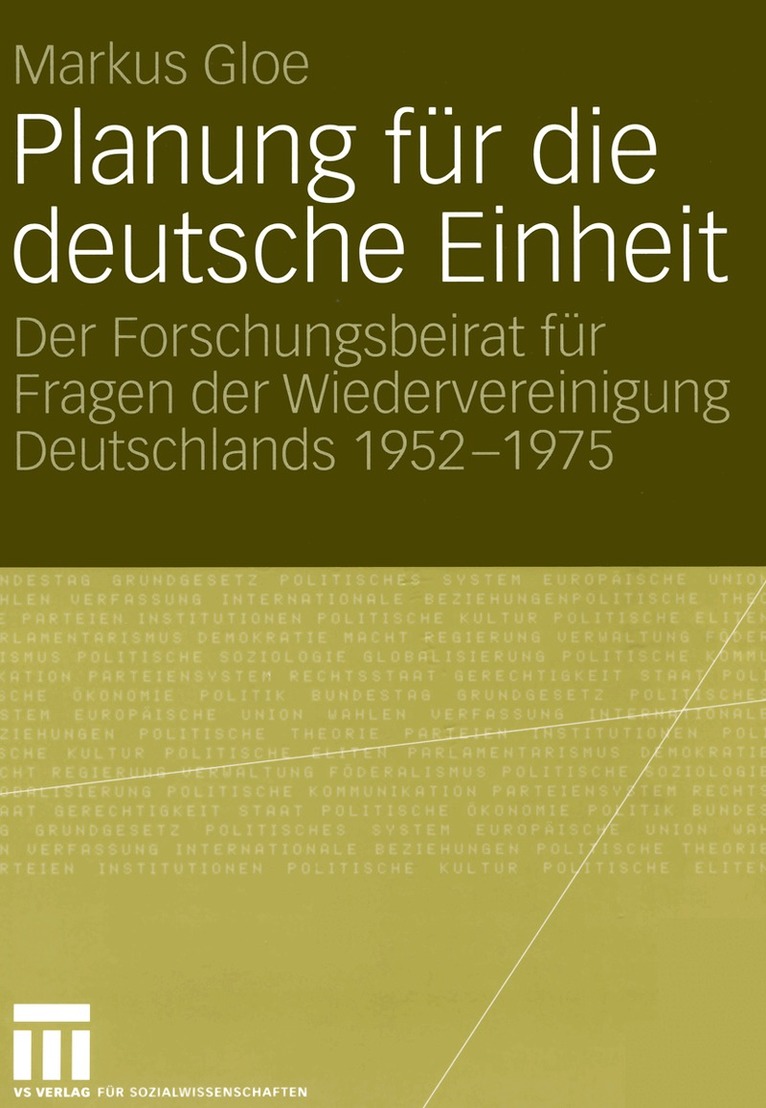 Markus Gloe gibt einen Uberblick uber die gesamte Entwicklung des "Forschungsbeirats fur Fragen der Wiedervereinigung Deutschlands beim Bundesministerium fur gesamtdeutsche Fragen" von seiner Grundung 1952 bis zu seinem Ende 1975. Er arbeitet die Vielschichtigkeit seines Wirkens heraus. Ausserdem nimmt er einen Vergleich zwischen den Arbeitsergebnissen des Forschungsbeirates und den tatsachlichen Entwicklungen 1989/1990 vor. Wenn auch die Ergebnisse und Erkenntnisse aus der Arbeit des Forschungsbeirates veraltet und in manchen Bereichen durch die politischen, sozialen und wirtschaftlichen Entwicklungen uberholt waren, hatte ein Heranziehen der Ergebnisse den Blick fur Probleme der Wiedervereinigung scharfen konnen.