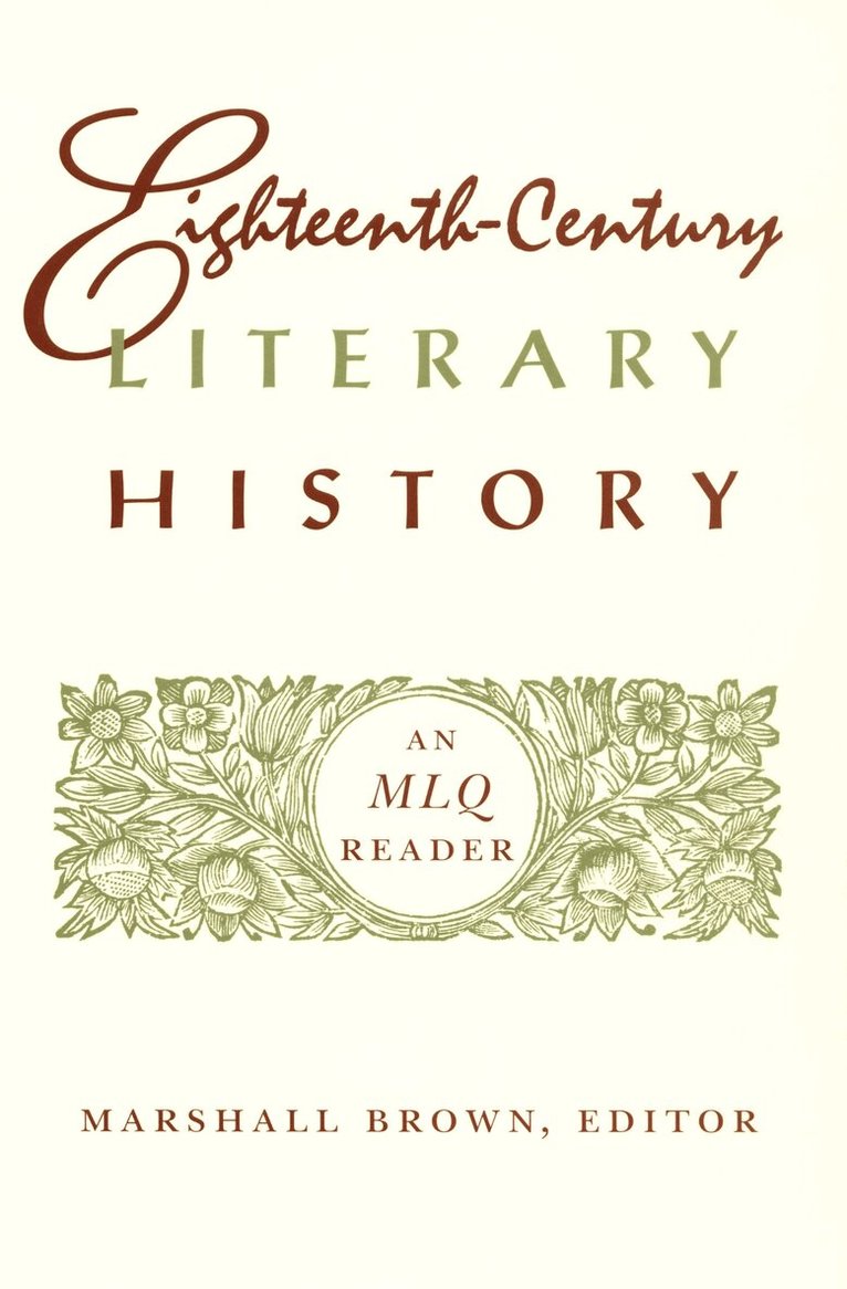 Viewed as a crucible of modernity, the eighteenth century has become a special focus of Modern Language Quarterly, a journal that has led the revival of literary history as a subject for empirical study and theoretical reflection. The essays in this volume, which cover a broad cross-section of eighteenth-century literary history, represent the best studies of this period recently published in MLQ.While examining different parts of the century, as well as different aspects and countries, contributors explore the intersection of literary studies with history, philosophy, psychology, and the visual arts. They discuss a creative range of topics, including feminism, nationalism, domestic ideology, the classical novel–drama–lyric poetry triad, and both aesthetic and philosophical writings. This span of subjects and approaches extends the focus of Eighteenth-Century Literary History beyond its period to project a spirit of inquiry onto literary history in general. Contributors. Nancy Armstrong, Marshall Brown, Sanford Budick, Catherine Gallagher, Thomas M. Kavanagh, Jon Klancher, Jill Kowalik, Jonathan Brody Kramnick, Christie McDonald, Jerome McGann, Ruth Perry, Michael B. Prince, Leonard Tennenhouse