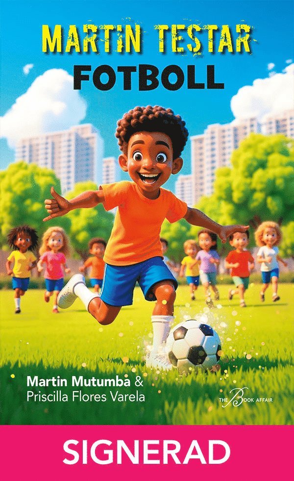 Martin Mutumba, folkkär fotbollsprofil tar steget in i barnboksvärlden. Tillsammans med journalist Priscilla Flores Varela har han skrivit Martin testar fotboll som är den första och fristående delen i en serie om Martin som testar olika sporter.