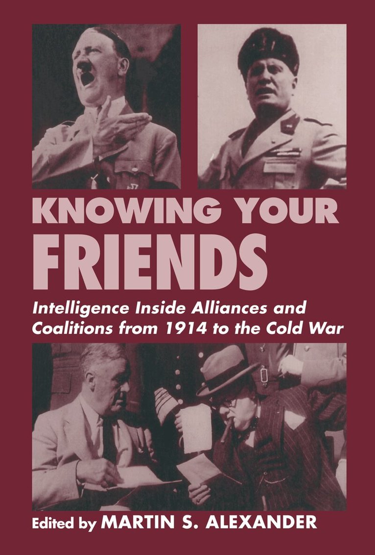 Little attention has been paid to the murky, ultra-business of gathering intelligence among and forming estimates about friendly powers, and friendly or allied military forces. How rarely have scholars troubled to discover when states entered into coalitions or alliances mainly and explicitly because their intelligence evaluation of the potential partner concluded that making the alliance was, from the originator's national security interest, the best game in town. The twentieth century has been chosen to enhance the coherence of and connections between, the subject matter of this under-explored part of intelligence studies.