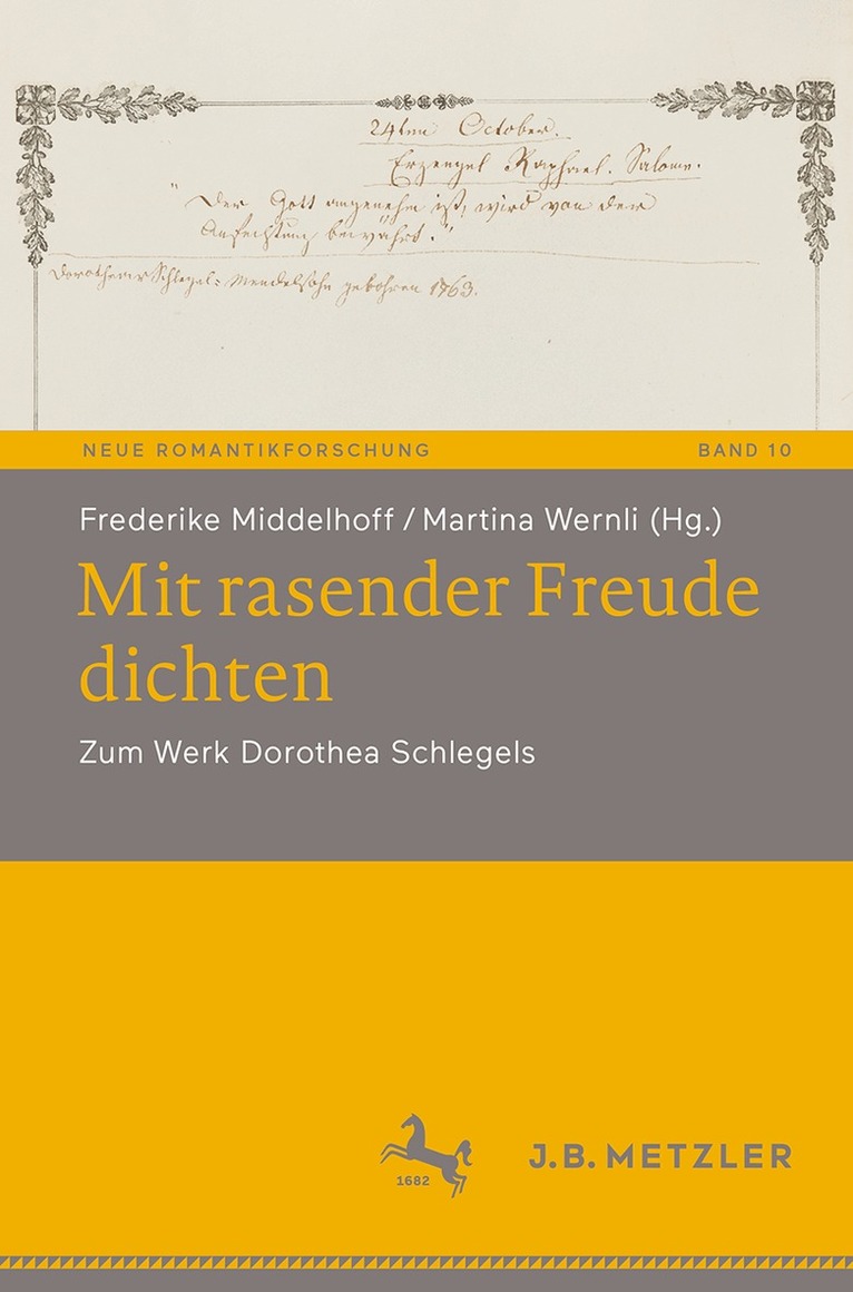 Dorothea Schlegels (1763–1839) Werk ist äußerst vielseitig und wenig bekannt: Die Autorin schrieb nicht nur den Fragment gebliebenen Entwicklungsroman „Florentin“ (1801), dem sogar die Aufnahme in die einschlägige Reclam-Reihe gelang, sondern sie trat auch als Literaturkritikerin und Romantheoretikerin in Erscheinung, wovon etwa ihr „Gespräch über die neuesten Romane der Französinnen“ (1800) zeugt. Als kreative Übersetzerin bot sie mit der „Geschichte des Zauberers Merlin“ von 1804 eine erste Übertragung der Magier-Geschichte aus dem französischen Artus-Stoff ins Deutsche und sie zeigte sich als kulturvermittelnde Autorin, z.B. mit Blick auf Germaine de Staëls Erfolgsroman „Corinne ou l’Italie“ (1806). Außerdem führte sie Briefwechsel mit namhaften Akteur:innen der romantischen Zirkel. Die Beiträge in diesem Band beleuchten Dorothea Schlegels Werk im Horizont romantischer Schreibpraktiken und verdeutlichen den Gewinn innovativer theoretisch-methodischer Ansätze für die Re-Lektüre ihrer Texte.