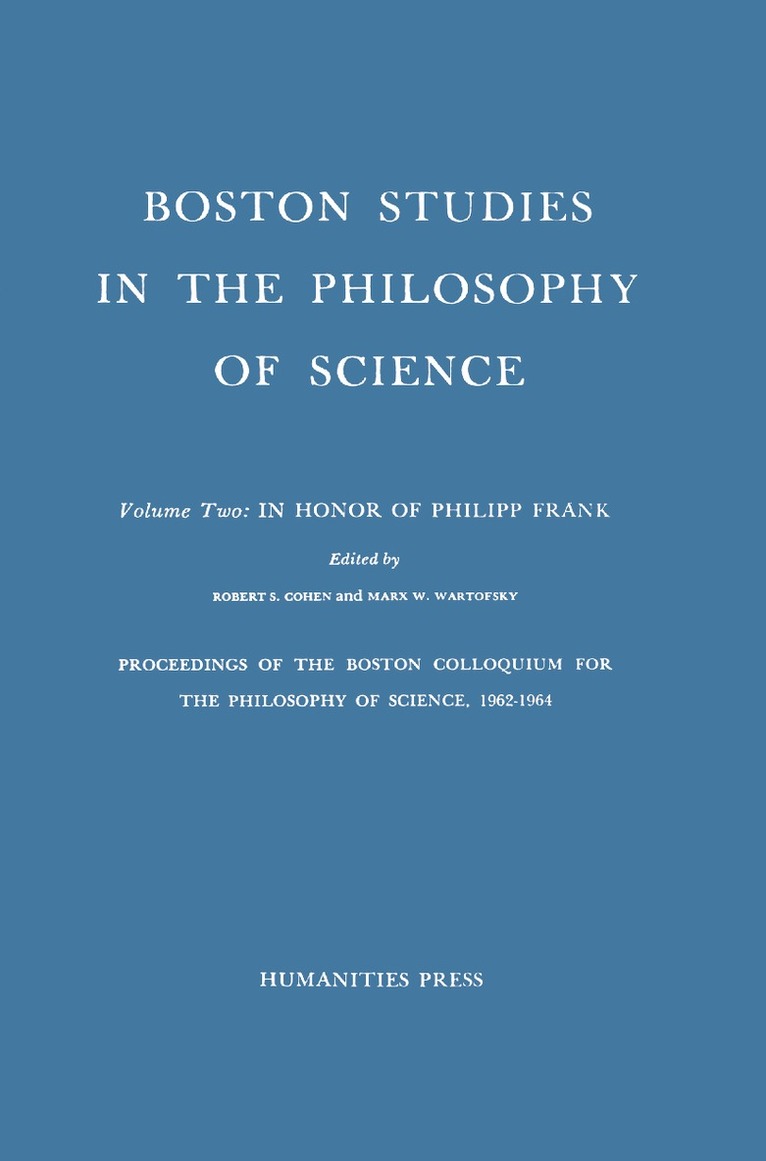 Proceedings of the Boston Colloquium for the Philosophy of Science,1962-1964