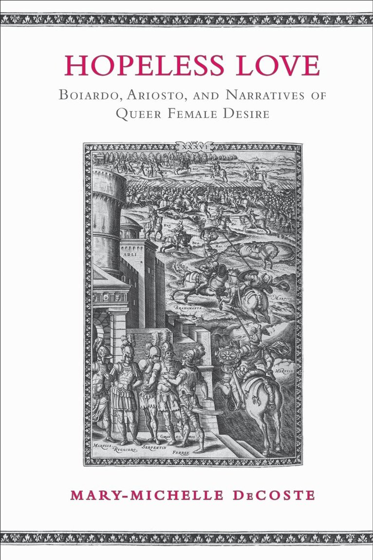 Book three of the Italian poet Matteo Maria Boiardo's epic poem Orlando innamorato (Orlando in Love) was published posthumously in 1494; in 1532, the poet Ludovico Ariosto published his final version of a sequel, Orlando furioso (The Frenzy of Orlando). At the end of his poem, Boiardo tells the tale of the princess Fiordispina's unfulfilled desire for the maiden warrior Bradamante, a story that Ariosto retells in the body of his later work.In Hopeless Love, Mary-Michelle DeCoste examines both versions of the Fiordispina and Bradamante episode using feminist and queer theory. DeCoste then links these treatments of queer female desire to their wider cultural contexts by exploring their antecedents in genres such as medieval romance epic and hagiography and by examining similar tropes in other sixteenth-century romance epics. An important work on a previously overlooked subject, Hopeless Love uncovers the diffusion of queer female desire in Italian literature and promotes a better understanding of sexuality in medieval and Renaissance Europe.