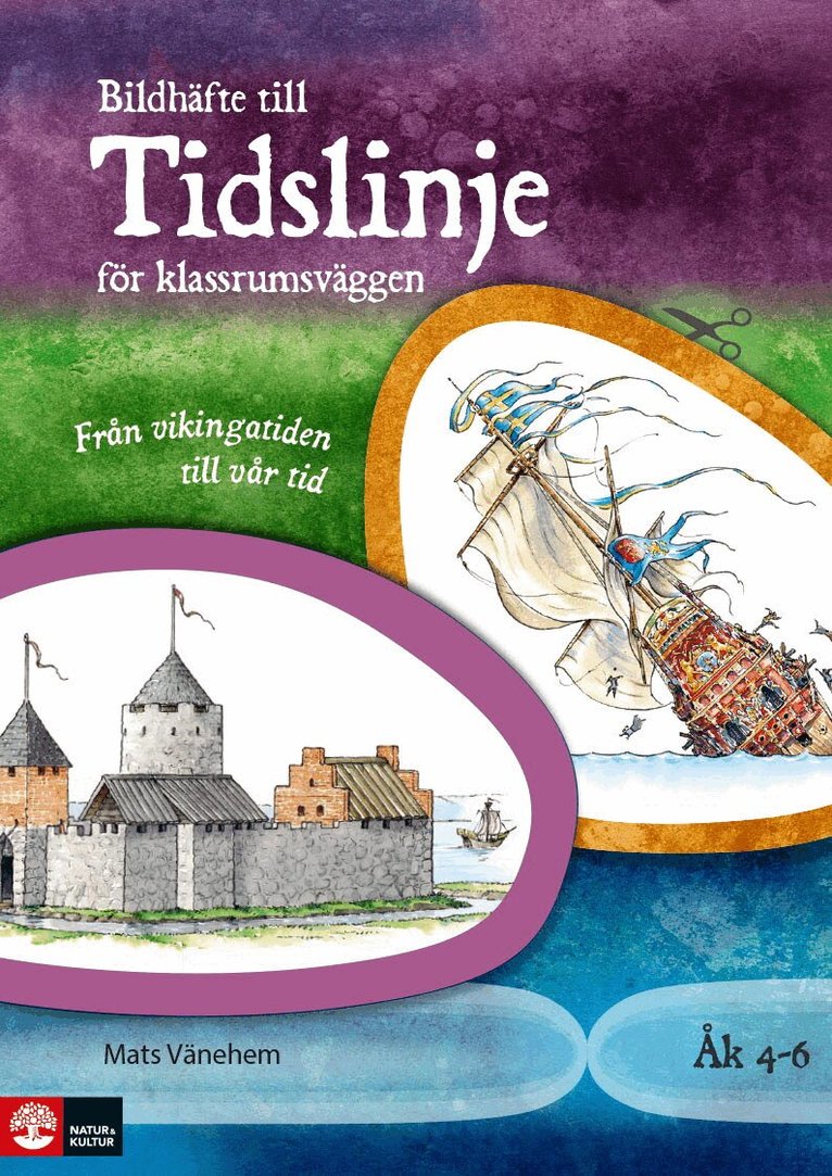 I det medföljande bildhäftet finns 25 illustrationer att klippa ut och fästa längs tidslinjen under undervisningens gång. Färgerna på ramarna runt bilderna visar vilken tidsperiod de hör till.