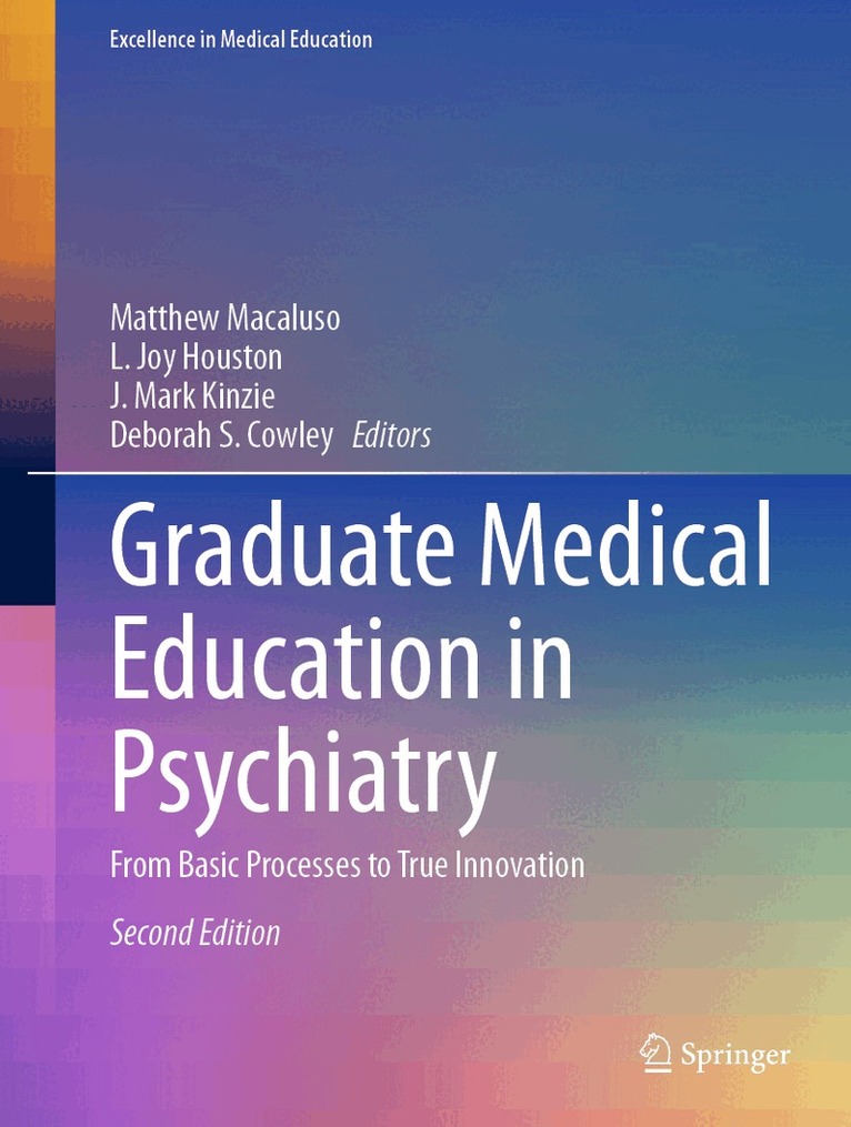 This book functions as a guide for leaders in academic and non-academic settings who are interested in developing, managing, or improving new or existing psychiatry residency programs. It notes the complexity of administering a residency program with ready solutions and tactics. Unique and comprehensive, this book contains chapters that focus on key areas of residency program management and innovation including but not limited to: meeting accreditation requirements, clinical and didactic curriculum, managing resident and faculty performance issues, research and scholarly activity in residency programs, rural training programs, and faculty development.Graduate Medical Education in Psychiatry is an invaluable resource for medical education leaders, as well as trainees and those interested in psychiatric residency or academic psychiatry in general.