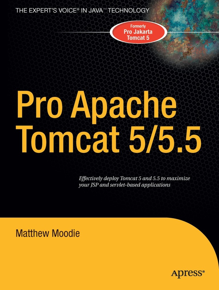 Pro Apache Tomcat 6 is ideal for Tomcat administrators and others who want to configure Tomcat. It covers only Tomcat 6 and doesn't get bogged down trying to overexplain tasks from each older version of the server. The book examines the entire installation, including file system, database, and web server, and provides you with security and performance tips.Author Matthew Moodie describes configuration files, as well as administration features like security, auto-deployment, remote deployment, and data sources. He gets right to the point and teaches you to use Tomcat without wasting time on Java or JSP introductions or excess discussion of JSP and Java code.