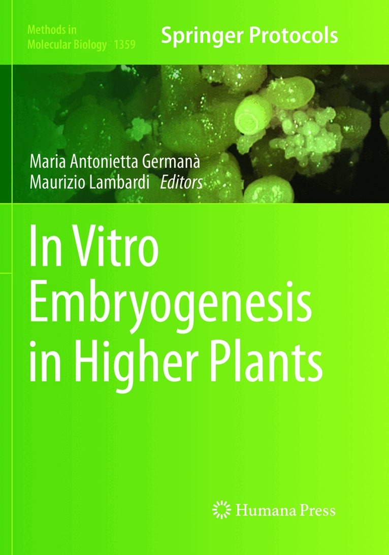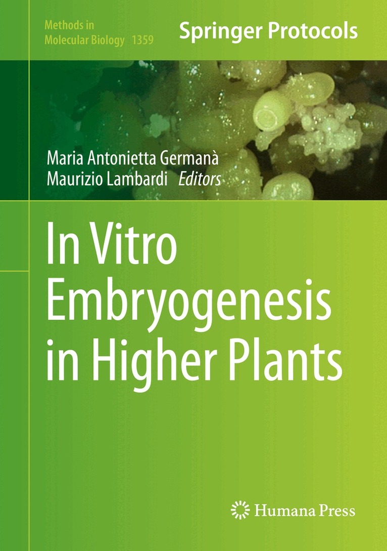 This volume presents an overview of recent advances, innovative applications, and future prospects of in vitro embryogenesis in higher plants. The book's chapters are divided into five parts: Part I contains reviews on general topics (microspore; zygotic and somatic embryogenesis; in vitro and in vivo asexual embryogenesis; advances on the genetic, physiological, and proteomic knowledge of somatic embryo formation; role of apoptosis and mitochondria in somatic embryogenesis; and innovation in the use of bioreactors). The remaining four parts discuss step-wise protocols on somatic embryogenesis in selected horticultural plants (Part II); forest trees (Part III); gametic embryogenesis (Part IV); and pivotal topics, such as the detection of epigenetics modifications during microspore embryogenesis, the in vitro embryogenesis and plant regenerations from isolated zygotes, the synthetics seed production, the induction and maturation of somatic embryos, and the cryostorage of embryogenic cultures (Part V). Written in the highly successful Methods in Molecular Biology series format, chapters include introductions to their respective topics, lists of the necessary materials and reagents, step-by-step, readily reproducible laboratory protocols, and tips on troubleshooting and avoiding known pitfalls.Authoritative and thorough, In Vitro Embryogenesis in Higher Plants, is a useful source of information and ideas for plant tissue culturists, cell biologists, embryologists, horticulturists, and operators of commercial nurseries. This book will introduce the fascinating work in in vitro embryogenesis in higher plants to students and young scientists.
