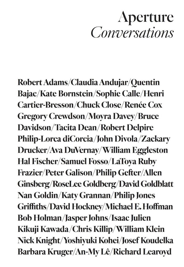 Why did Henri Cartier-Bresson nearly have a posthumous exhibition while still alive? What led Stephen Shore to work with color? Why was Sophie Calle accused of stealing Vermeer’s The Concert ? And what is Susan Meiselas’s take on Instagram and the future of online storytelling?Aperture Conversations presents a selection of interviews pulled from Aperture’s publishing history, highlighting critical dialogue between photographers, esteemed critics, curators, editors, and artists from 1985 to the present day. Emerging talent along with well-established photographers discuss their work openly and examine the future of the medium. Through the history of Aperture’s booklist, online platform, and Aperture magazine, Aperture Conversations celebrates the artist’s voice, collaborations, and the photography community at large.