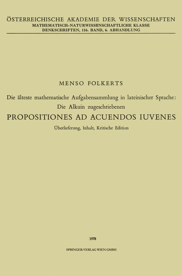 Die älteste mathematische Aufgabensammlung in lateinischer Sprache: Die Alkuin zugeschriebenen
