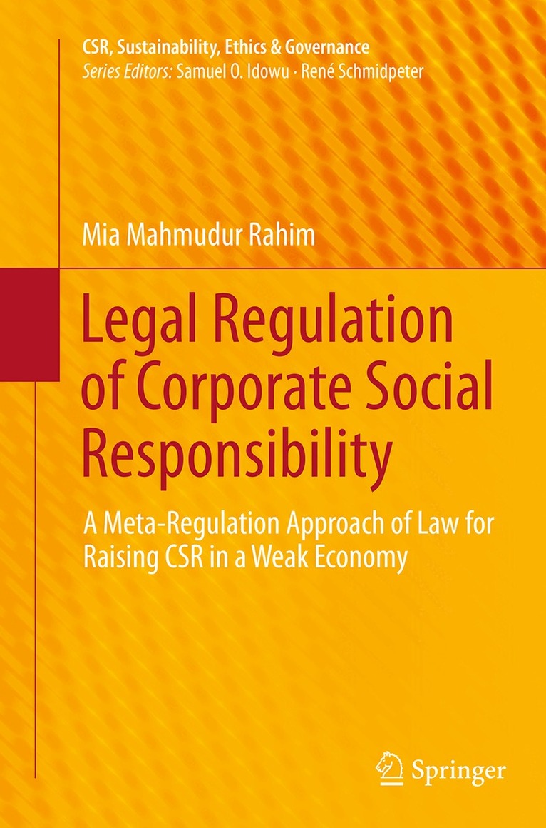 Even though Corporate Social Responsibility (CSR) has become a widely accepted concept promoted by different stakeholders, business corporations' internal strategies, known as corporate self-regulation in most of the weak economies, respond poorly to this responsibility. Major laws relating to corporate regulation and responsibilities of these economies do not possess adequate ongoing influence to insist on corporate self-regulation to create a socially responsible corporate culture.This book describes how the laws relating to CSR could contribute to the inclusion of CSR principles at the core of the corporate self-regulation of these economies in general, without being intrusive in normal business practice. It formulates a meta-regulation approach to law, particularly by converging patterns of private ordering and state control in contemporary corporate law from the perspective of a weak economy. It proposes that this approach is suitable for alleviating regulators' limited access to information and expertise, inherent limitations of prescriptive rules, ensuring corporate commitment, and enhance the self-regulatory capacity of companies.This book describes various meta-regulation strategies for laws to link social values to economic incentives and disincentives, and to indirectly influence companies to incorporate CSR principles at the core of their self-regulation strategies. It investigates this phenomenon using Bangladesh as a case study.