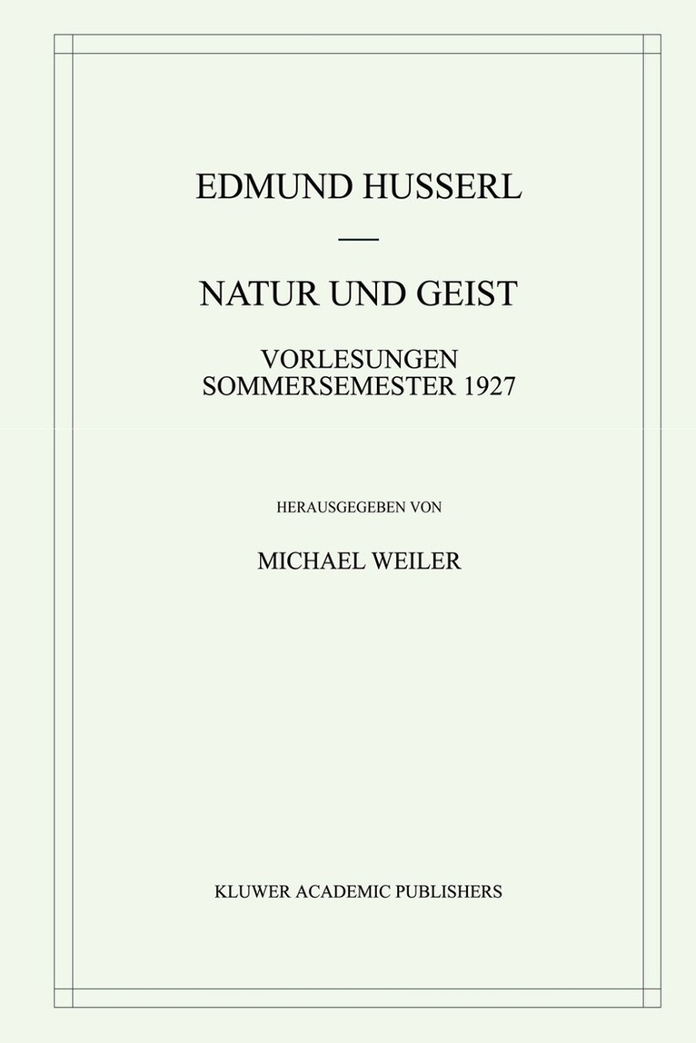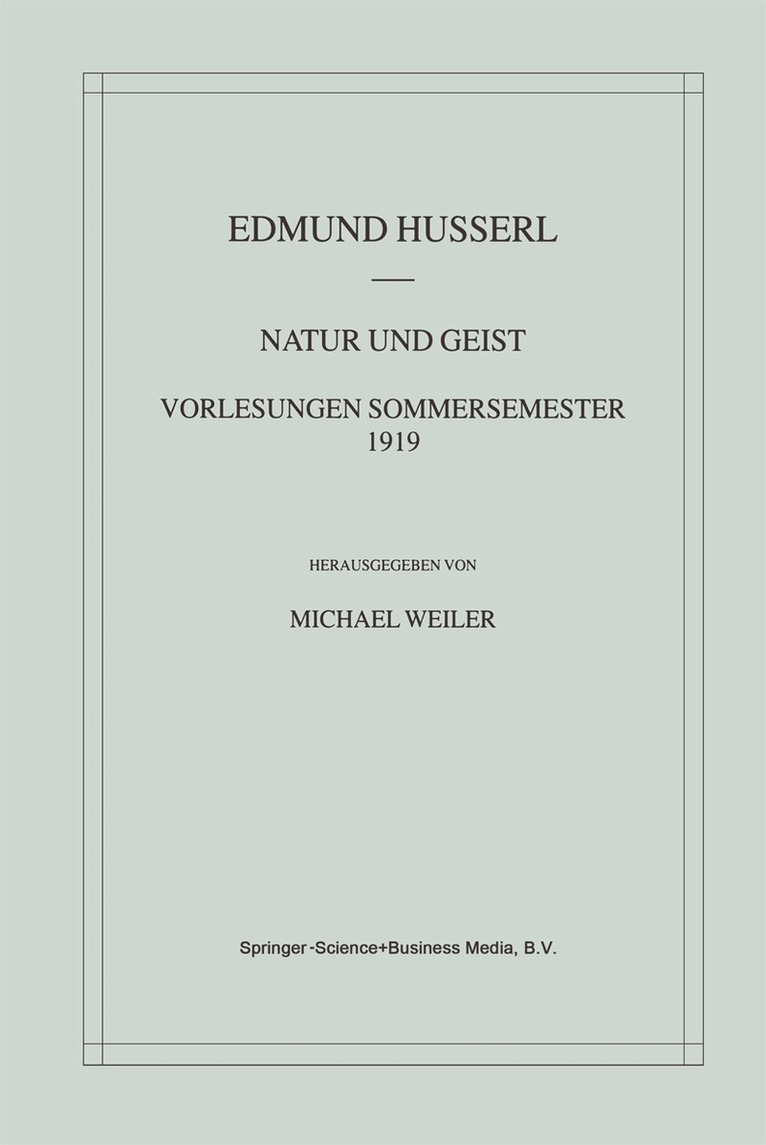 Mit der im vorliegenden Band der Husserliana Materialien veröffentlichten Vorlesung über "Natur und Geist" vom Sommersemester 1919 sind nun nach den Ideen II und der "Natur und Geist"-Vorlesung von 1927 alle drei großen Auseinandersetzungen Husserls mit der "Natur und Geist"-Problematik in Husserliana-Ausgaben zugänglich gemacht. Die zentrale Bedeutung der Vorlesung von 1919 innerhalb der umfangreichen und langjährigen Forschungen Husserls zum "Natur und Geist"-Thema besteht in ihrer systematischen Übergangsstellung zwischen den vorherigen, mehr an Analysen zur Konstitution von Natur und Geist ausgerichteten Texten und den späteren, diese Thematik eher wissenschaftstheoretisch und wissenschaftskritisch angehenden Arbeiten. In dieser Vorlesung stellt Husserl auf der Grundlage einer allgemeinen Einleitung in die Phänomenologie umfassende Überlegungen zu einer transzendentalen Theorie von Natur und Geist an, in denen er vornehmlich die physische Natur und die ihr zuzuordnenden Wissenschaften zum Gegenstand seiner Untersuchungen macht.