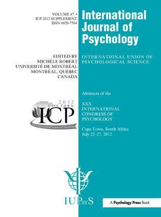 The abstracts of the XXX International Congress of Psychology (July 2012, Cape Town) are published as a supplement to Volume 47 of the International Journal of Psychology. The published volume includes the abstracts of the invited addresses, symposia, oral and poster presentations, numbering over 5,000 separate contributions and creating an invaluable overview of the discipline of psychological science around the world today.