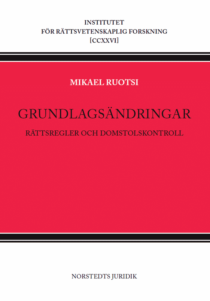 Frågor om hur grundlagsändringar ska initieras, väckas och beredas har emellertid behandlats mycket sparsamt inom svensk rättsvetenskap. Huruvida domstol kan åsidosätta en grundlagsändring på grund av formella brister eller med hänvisning till ändringens sakliga innehåll har knappast berörts alls, trots att frågorna har rönt stor uppmärksamhet internationellt. I Grundlagsändringar. Rättsregler och domstolskontroll behandlas dessa hittills outforskade frågor ingående.
