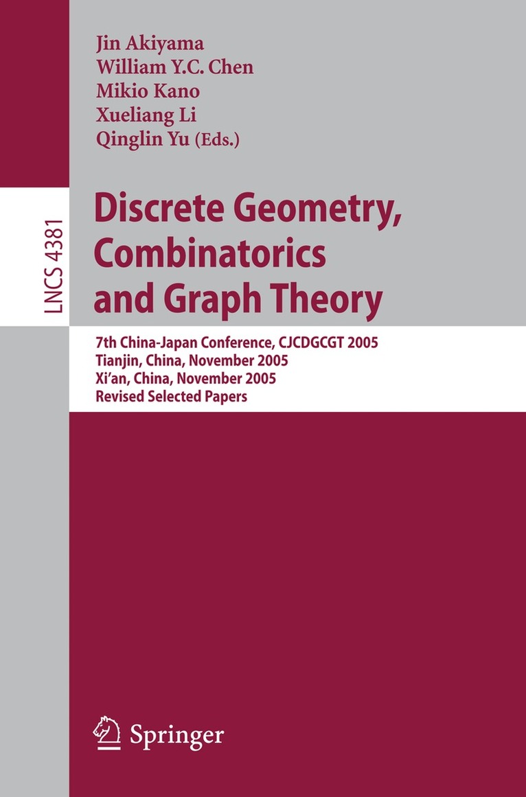 TheJapanConferenceonDiscreteandComputationalGeometry(JCDCG)has beenheldannuallysince1997. Oneofthegoalsofthisconferenceseriesistobring togetherJapaneseresearchersfrombothacademiaandindustrywithresearchers inthese?eldsfromabroadtosharetheirrecentresults. JCDCG2000washeld22-25November2000atTokaiUniversityinTokyo inconjunctionwiththecelebrationofWorldMathematicsYear2000. Atotalof 120participantsfrom20countriesattended. Thisvolumeconsistsofthepapers presentedatJCDCG2000,whichhavebeenrefereedandrevised. Somepapers whichappearinshortforminthisvolumealsoappearinfullerexpandedversions injournalsdedicatedtocomputationalgeometry. Theorganizersoftheconferencethanktheprincipalspeakersfortheir- terestandsupport:ImreBarany,ErikD. Demaine,GregN. Fredrickson,Gyula Karolyi,NaokiKatoh,DavidKirkpatrick,JosephO'Rourke,JanosPach,Jozsef Solymosi,WilliamSteiger,JorgeUrrutia,andAllanWilks. Theythankthe- jorsponsorsfortheirgenerouscontribution:TheResearchInstituteofEdu- tionalDevelopmentofTokaiUniversity,theMinistryofEducationofJapan(for thegrant-in-aidtoA. Saito(A):10304008),andTokaiEducationInstruments Co. ,Ltd.April2001 TheEditors, JinAkiyama MikioKano MasatsuguUrabe OrganizingCommittee Chairs:JinAkiyamaandMikioKano Members: TetsuoAsano,DavidAvis,VasekChvatal,KiyoshiHosono,HiroshiImai, TakakoKodate,JosephO'Rourke,ToshinoriSakai,XuehouTan,Morimasa Tsuchiya,MasatsuguUrabe,andJorgeUrrutia. TableofContents Papers DudeneyDissectionsofPolygonsandPolyhedrons-ASurvey-...1 J. AkiyamaandG. Nakamura UniversalMeasuringDeviceswithoutGradations...31 J. Akiyama, H. Fukuda,G. Nakamura, T. Sakai, J. Urrutia, andC. Zamora-Cura ANoteonthePurelyRecursiveDissectionforaSequentially n-Divisible Square ...41 J. Akiyama, G. Nakamura, A. Nozaki, and K. Ozawa SequentiallyDivisibleDissectionsofSimplePolygons ...53 J. Akiyama, T. Sakai, andJ. Urrutia PackingConvexPolygonsintoRectangulerBoxes ...67 H. AltandF. Hurtado OntheNumberofViewsofPolyhedralScenes ...81 B. Aronov, H. Br. onnimann,D. Halperin,andR. Schi?enbauer ProblemsandResultsAroundtheErdos-Szek ? eresConvex PolygonTheorem ...91 I. Bar ' an ' y andG. Kar ' olyi OnFindingMaximum-CardinalitySymmetricSubsets ...106 P. Brass FoldingandUnfoldingLinkages,Paper,andPolyhedra ...113 E. D. Demaine OntheSkeletonoftheMetricPolytope ...125 A. Deza,K. Fukuda,D.Pasechnik, andM. Sato GeometricDissectionsThatSwingandTwist ...137 G. N. Frederickson OnConvexDecompositionsofPoints ...149 K. Hosono, D. Rappaport, andM. Urabe VolumeQueriesinPolyhedra ...156 J. IaconoandS. Langerman VIII Table ofContents SumofEdgeLengthsofaGraphDrawnonaConvexPolygon ...160 H. Ito,H. Uehara, andM. Yokoyama OnDoubleBoundGraphswithRespecttoGraphOperations ...167 S. Iwai,K. Ogawa,andM. Tsuchiya GeneralizedBalancedPartitionsofTwoSetsofPointsinthePlane ...176 A. KanekoandM. Kano OnPathsinaCompleteBipartiteGeometricGraph ...187 A. KanekoandM. Kano ApproximatingUniformTriangularMeshesforSpheres ...192 N. Katoh,H. Kojima, andR. Taniguchi TheConstructionofDelaunayDiagramsbyLobReduction ...205 P. Kau?mannand J. C. Spehner GeometricTransformationsinPlaneTriangulations ...217 K. Kawarabayashi, A. Nakamoto, Y. Oda, andM. Watanabe SeparationSensitiveKineticSeparationStructuresforConvexPolygons . . 222 D. Kirkpatrick andB. Speckmann OnAcuteTriangulationsofQuadrilaterals ...237 H. Maehara IntersectingRedandBlueLineSegmentsinOptimalTimeandPrecision . 244 A. MantlerandJ. Snoeyink TightErrorBoundsofGeometricProblemsonConvexObjectswith ImpreciseCoordinates ...252 T. NagaiandN.Tokura TriangleContactSystems,OrthogonalPlanePartitionsandtheirHitGraphs 264 A. Nakamoto NoteonDiagonalFlipsandChromaticNumbersofQuadrangulationson ClosedSurfaces ...274 A. NakamotoandS. Negami AnExtensionofCauchy'sArmLemmawithApplicationtoCurve Development ...280 J. O'Rourke OntheComplexityoftheUnionofGeometricObjects ...292 J. Pach Table of Contents IX StructureTheoremsforSystemsofSegments ...308 J. Pach andJ. Solymosi 3-dimensionalSingleActiveLayerRouting ...