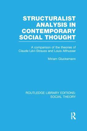The primary concern of this book is to investigate whether or not structuralism constitutes a distinctive framework in the social sciences. The author focuses on two major structuralist thinkers, Louis Althusser and Claude Lévi-Strauss. She analyses and compares the structure of their theory, and places them within the context of their respective disciplines. Dr Glucksmann began working on this book at a time when structuralism was at the height of its popularity in France, and was thought to be a homogenous alternative to bourgeois sociology. The progress of her study implicitly reflects the developments and divergences within structuralist thought that have emerged since then. In particular, she examines the differences between the political and philosophical thought of Althusser and Lévi-Strauss, which have become increasingly manifest.