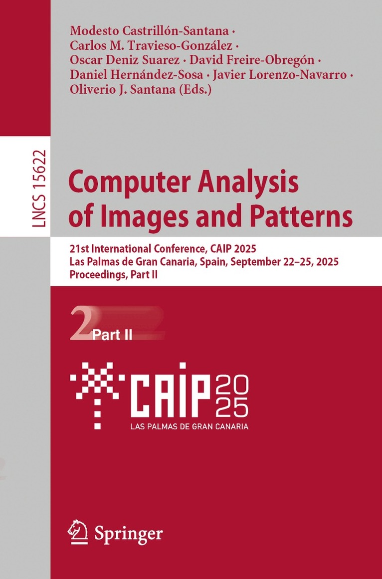 The volume set LNCS 15621-15622 constitutes the refereed proceedings of the 21st International Conference on Computer Analysis of Images and Patterns, CAIP 2025, which took place in Las Palmas de Gran Canaria, Spain, during September 22-25, 2025.The 65 full papers were carefully reviewed and selected from 109 submissions. The proceedings focus on Facial and Video Recognition, Image Segmentation, Object Detection and Applications, 3D Vision and Reconstruction, Biomedical Imaging and Diagnostics, Model Robustness and Generalization, Multimodal and Vision-Language Models, Robotics, Interaction and Intelligent Systems, Emerging Methods and Vision Applications.