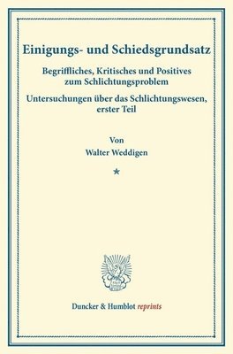 Einigungs- Und Schiedsgrundsatz: Begriffliches, Kritisches Und Positives Zum Schlichtungsproblem. Untersuchungen Uber Das Schlichtungswesen, Erster Te