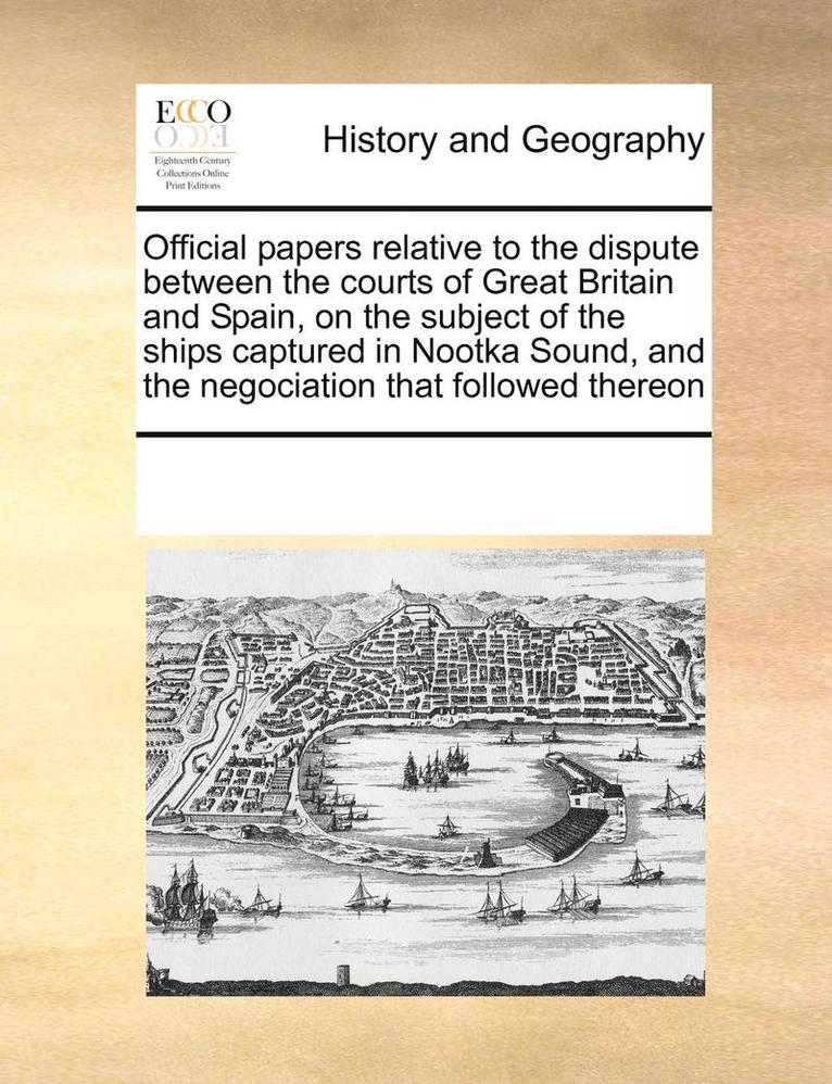 Official Papers Relative to the Dispute Between the Courts of Great Britain and Spain, on the Subject of the Ships Captured in Nootka Sound, and the Negociation That Followed Thereon