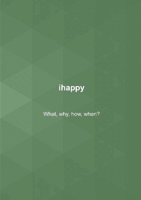 What? Why? How? When? Four little words that might be your best friend, or your worst enemy. Some things are very easy to phrase, others, not so much... Here you have 80 opportunities to phrase your thoughts. You really do not need this book to do it, you can do it with just pen and paper... but if you choose to buy this book, you make a commitment to yourself. Whenever you want to change anything or do something, just answer these questions: What (do you want do)? Why (do you want to do it)? How (will you accomplish it)? When (are you going to do)? This is probably the simplest book in the ihappy series, but perhaps also the hardest. You find more books and other things at https://ihappy.one