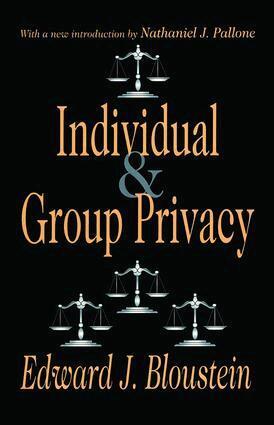 In exploring a series of problems associated with privacy and the First Amendment, Bloustein defines individual and group privacy, distinguishing them from each other and related concepts. He also identifies the public interest in individual privacy as individual integrity or liberty, and that of group privacy as the integrity of social structure. The legal protection afforded each of these forms of privacy is illustrated at length, as is the clash between them and the constitutional guarantees of the First Amendment and the citizen's general right to know. In his final essay, Bloustein insists that the concept of group privacy is essential to a properly functioning social structure, and warns that it would be disastrous if this principle were neglected as part of an overreaction to the misuse of group confidences that characterized the Nixon era.