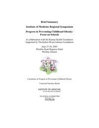 Obesity is now an epidemic among children and adolescents in the United States. Nationwide, roughly nine million children over six years of age are obesea "with elevated risks of both health conditions, such as diabetes and hypertension, and poor quality of life, possibly throughout adulthood. The Institute of Medicine (IOM) report, Preventing Childhood Obesity: Health in the Balance, was released in September 2004 and identified promising approaches for obesity prevention efforts and a set of recommendations for a variety of stake holders and sectors. The IOM is building on its previous work by initiating a new study to assess progress in childhood obesity prevention efforts. In 2005, the IOM organized three regional meeting in the Midwest, South, and Western United States to galvanize obesity prevention efforts of local, state, and national decision-makers, community and school leaders, grassroots organizations, and industry including the food, beverage, restaurant, leisure, and entertainment industries. In collaboration with the Kansas health Foundation (KHF), the IOM held the study's first regional symposium in Wichita, Kansas on June 27-28, 2005.The symposium was structured to include three panels that focused on challenges and innovations for obesity prevention and school policies, school programs, and additional steps that can be taken by numerous stakeholders to overcome barriers to progress. Three break-out sessions focused on creating and strengthening linkages with other sectors to promote childhood obesity prevention including links between schools and home, community, and health care; links between schools and industry; and links between schools and the built environment. This brief summary highlights the recurring themes for accelerating change and moving forward with obesity prevention efforts that emerged from the symposium; forge strategic partnerships; empower local schools and communities; educate stakeholders; evaluate obesity prevention efforts; document the benefits of obesity preventions; innovate to address barriers; use a systems approach; and develop a long-term strategic plan. The findings of this summary, along with those of two other symposia, and a more detailed discussion of insights and regional examples will be incorporated in the committee's final report that will be released in 2006.