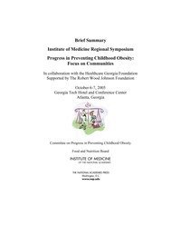 The nation faces a growing epidemic of childhood obesity that threatens the immediate health of our children and their prospects of growing up healthy into adulthood. During the past 30 years, obesity in the United States has more than doubled among young children aged 2-5 years and adolescents aged 12-19 years, and it has more than tripled among youth aged 6-11 years. Currently, more than 9 million children 6 years of age and older are considered to be obese. The sequelae of obesity among children and youth are also rapidly increasing, including an increased risk of type 2 diabetes, hypertension, metabolic syndrome, asthma, and social and psychological consequences including low self-esteem and depression. To develop a prevention-focused action plan to reduce the number of obese children and youth in the United States, the Institute of Medicine organized three regional symposia, and held its second regional symposium in Atlanta, Georgia on October 6-7, 2005.Progress in Preventing Childhood Obesity: Focus on Communities highlights the recurring themes that emerged from the symposium for accelerating change and moving forward with obesity prevention efforts: empower communities and neighborhoods, change the environment, forge strategic partnerships, garner and mobilize political support, educate stakeholders, identify leaders and build on cultural assets, collect and disseminate local data, evaluate programs and interventions, and translate successful interventions to other communities. Approximately 90 individuals active in childhood obesity prevention efforts in the southeastern region of the United States who represented a range of stake holder perspectives and innovative practices in local communities including students, community leaders, physicians, health educators, clergy, teachers, and state and federal government officials were invited to participate in the symposium. The contents of this summary reflect specific examples presented and discussed during the symposium, and unless otherwise noted, the general perspectives of the participants.This summary, along with two other symposia summaries, and a more detailed discussion of insights and regional examples, will be incorporated in the IOM committee's final report on progress in preventing childhood obesity that will be released in the fall of 2006.