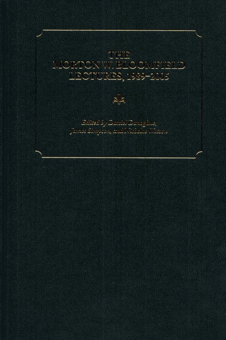 Shortly after Morton Bloomfield's death in 1987, a number of his friends and colleagues sought a way to honor and preserve his memory. The result was a lecture of more than ordinary interest and more than ordinary prominence, signified by the fact that each would be published for individual circulation and then would be collected, as they are here, to appear in print for a wider audience. The lectures contained here reflect Morton Bloomfield's own wide and varied interests: literature, the history of philosophy, language studies, and Judaic studies. Morton W. Bloomfield's broad learning and personal popularity were unrivaled among his fellow medievalists, and this volume demonstrates the outpouring of those close to him and whom he influenced. The lectures contained within deal with a wide variety of topics, all a fitting tribute to a scholar who touched so many lives.