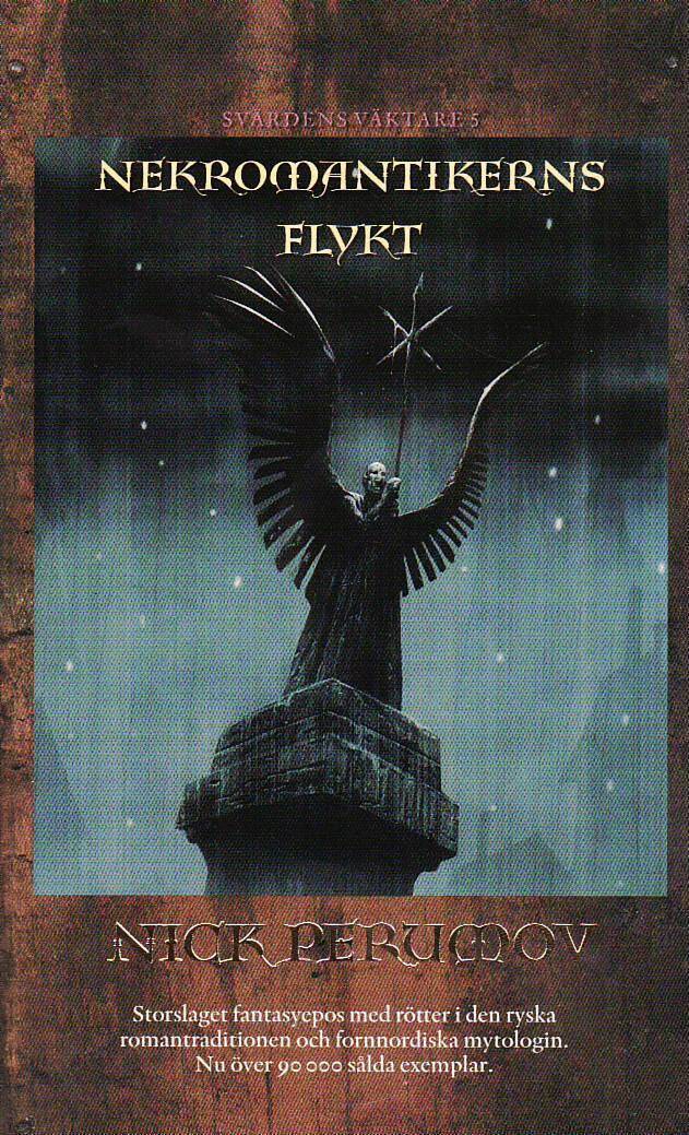 Nekromantikern Fess har lidit ett förödande nederlag i kampen mot Heliga inkvisitionen. Egest ligger i ruiner, vännerna är döda och nu vandrar han ensam vidare mot norr. Ett gåtfullt möte i bergets djup ger honom nya insikter om sig själv och världens tillstånd. Han vägrar fortfarande att tro att han är på väg att förvandlas till Förintaren. Under hans vandring ansluter sig oväntade följeslagare, och tillsammans ger de sig ut i öknen. Någonstans där ute ligger en uråldrig nekropol, en stad för döda, där saladoréerna i århundraden begravde sina anförvanter tills de en dag tvingades överge platsen. Samtidigt fortsätter stridsmagiker Klara Kummel sitt sökande efter Fess. Hack i häl har hon magikerflickan Silvia, som fått i uppdrag att en gång för alla undanröja upprorskvinnan som vågat trotsa ärkemagiker Ignatius Kopper. Svärdens väktare är en serie av tolv böcker. Perumov utsågs 2004 till Europas bäste inom genren och valdes 2007 för andra gången till årets fantasyförfattare i Ryssland.