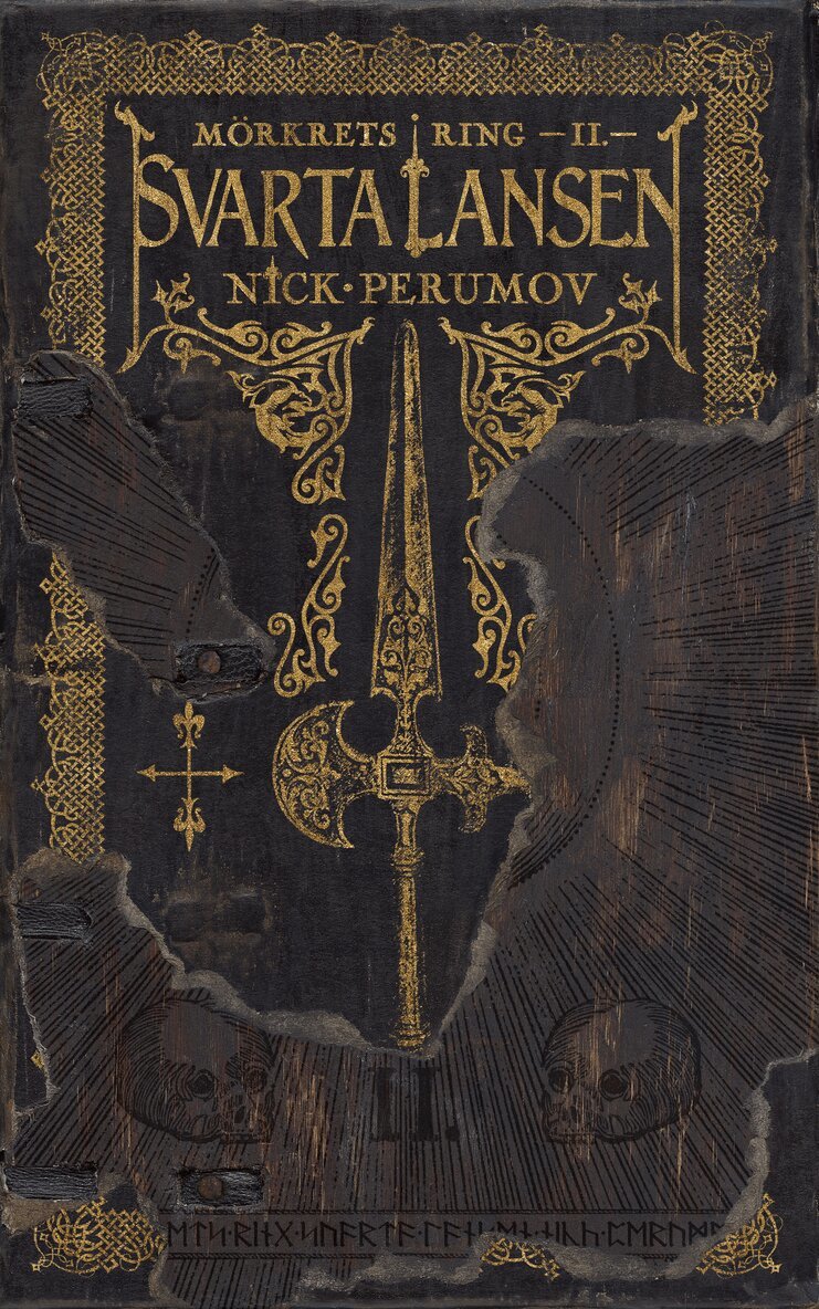 Tre soldater släpar sig fram på Midgårds leriga vägar. Målet för deras irrfärder är nära, men ouppnåeligt. De förföljer Olmer, kungen utan kungarike och Mörkerringens siste bärare. Runtomkring rasar kriget och endast ett mirakel kan rädda Ljusets försvarare från den vrede som fyller den som förberett Den svarta lansen för ett sista, dödligt hugg. Nick Perumov om boken: »Mörkrets ring är inte ett rättroget verk i Tolkiens tradition. Om han skildrade kampen mellan gott och ont, så är jag mer intresserad vad som händer när det goda inte går att skilja från det onda.« Svarta lansen är andra boken av tre fristående böcker. Första boken, »Alvklingan«, utkom 2011