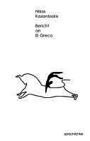 Kazantzakis's autobiographical novel Report to Greco was one of the last things he wrote before he died. It paints a vivid picture of his childhood in Crete, still occupied by the Turks, and then steadily grows into a spiritual quest that takes him to Italy, Jerusalem, Paris, Vienna, Berlin, Russia and the Caucasus, and finally back to Crete again. At different times Nietzshe, Bergson, Buddha, Homer and Christ dominate as his spiritual masters.