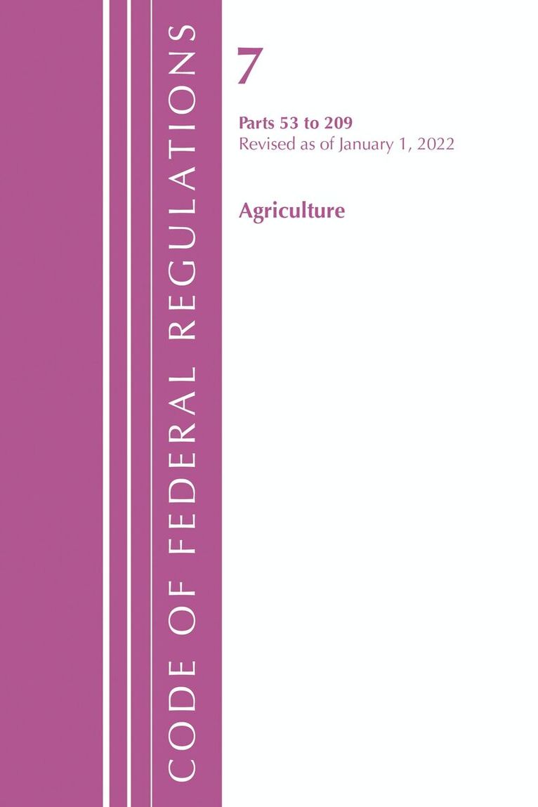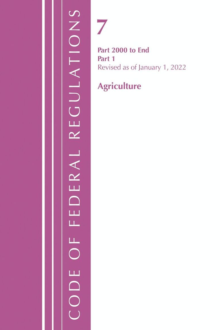 Code of Federal Regulations, Title 07 Agriculture 2000-End, Revised as of January 1, 2022