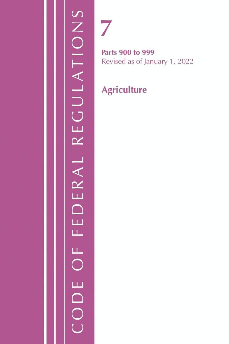 Code of Federal Regulations, Title 07 Agriculture 900-999, Revised as of January 1, 2022