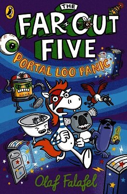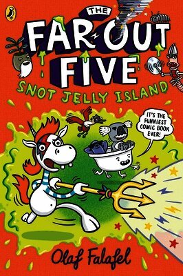 The Far-Out Five!A madcap team of adventurers, lost far from home without the magical wand that could change them back into a normal group of kids and one grumpy amateur magician...Spewnicorn, a punk unicorn who vomits rainbowsWally, a pompous and cowardly koalaTubbs, a walking bathtub Bloof, a blue-footed booby and Glossy Jeff, a really chilled-out seal Together they must sail the oceans and face bizarre creatures, weird islands and mysterious tasks on their quest to find Wally’s missing wand and get back home.Now they face an island with a lot of Portal Loos – mobile toilets that are gateways to different interconnected dimensions – obviously! With a rampaging evil impala on the loose, they must hop from world to world with only the navigational whelks to help them find the way our of this multi-dimensional whirlwind. Will they ever escape? Will Wally ever manage to have a wee? The hilarious graphic novel series from stand-up comedian and artist Olaf Falafel. Read more about the Far-Out Five in SNOT JELLY ISLAND.