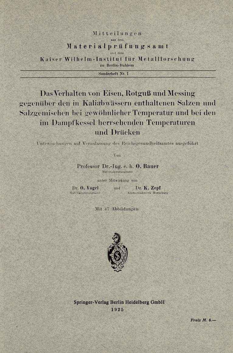 Dieser Buchtitel ist Teil des Digitalisierungsprojekts Springer Book Archives mit Publikationen, die seit den Anfängen des Verlags von 1842 erschienen sind. Der Verlag stellt mit diesem Archiv Quellen für die historische wie auch die disziplingeschichtliche Forschung zur Verfügung, die jeweils im historischen Kontext betrachtet werden müssen. Dieser Titel erschien in der Zeit vor 1945 und wird daher in seiner zeittypischen politisch-ideologischen Ausrichtung vom Verlag nicht beworben.