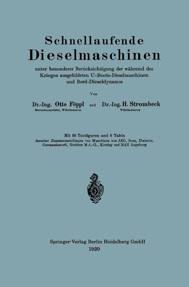Schnellaufende Dieselmaschinen unter besonderer Berücksichtigung der während des Krieges ausgebildeten U-Boots-Dieselmaschinen und Bord-Dieseldynamos
