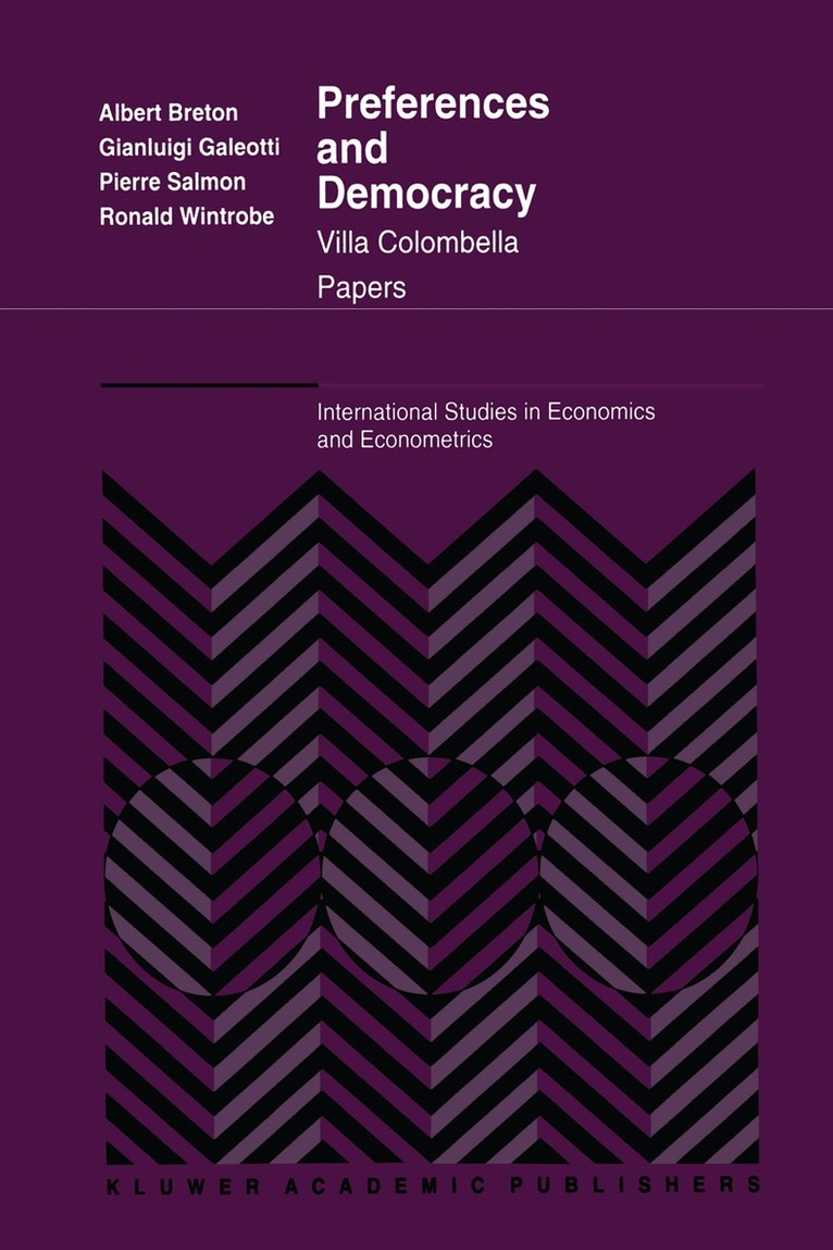This book is a selection of papers presented at the Fourth Villa Colombella Seminar on the topic of the relationship between the preferences of citizens for public policies and how (or whether) these get expressed as political demands by interest groups, political parties and governments. "Preferences and Democracy" features contributions from prominent North American and European scholars with up-to-date commentary and surveys of standard topics, including probabilistic voting, the conver-gence of political parties, and redistribution. New topics are addressed, including how political institutions provide bridges between demand and supply; how the political process in a democracy sometimes "represses" political demand. "Preferences and Democracy" addresses the important issue of how the democratic political process succeeds or fails in facilitating the expression of the political demands of the people. The book is a vital reference for students and specialists in economics and political science.